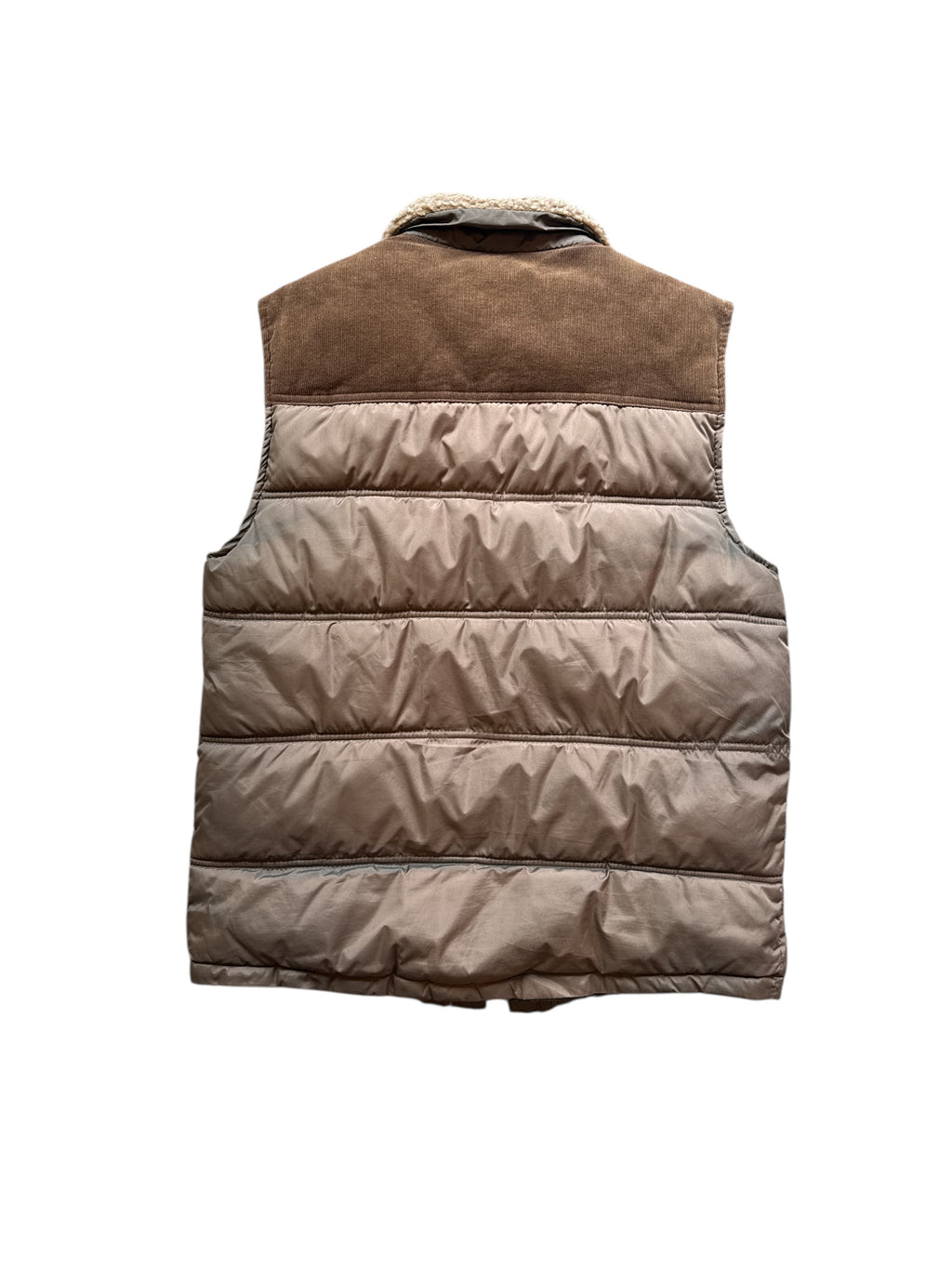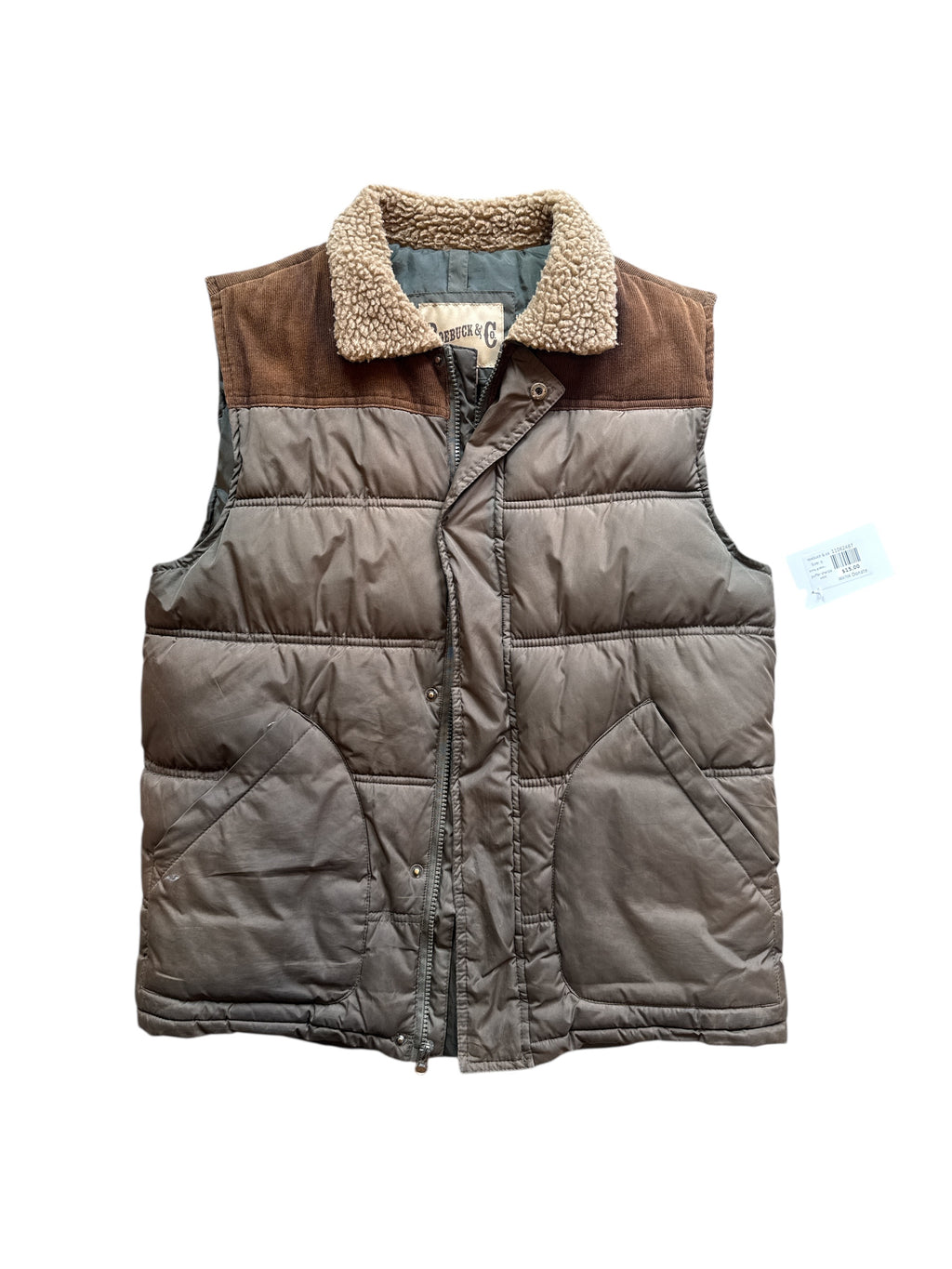 army green brown roebuck & co puffer sherpa vest, s