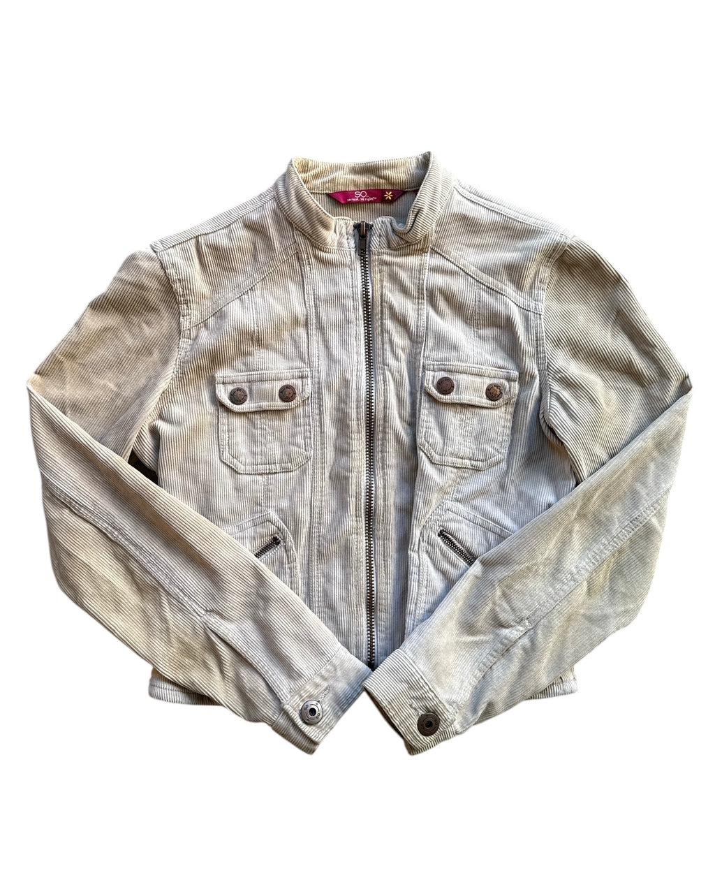 beige so cord zip up jacket, s