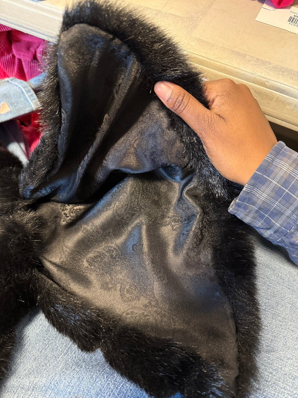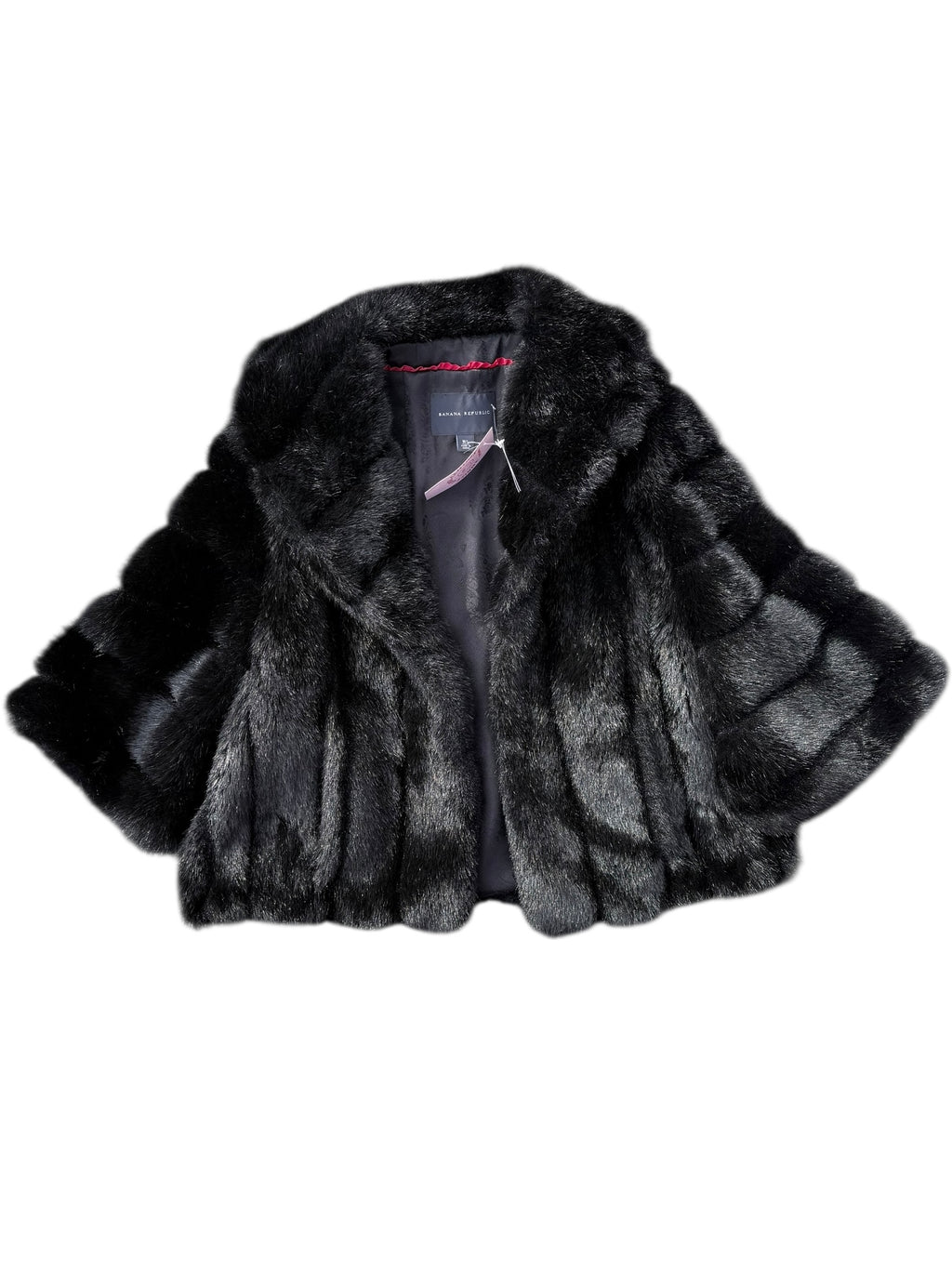 black banana republic fur cropped jacket w split sleeves, m/l