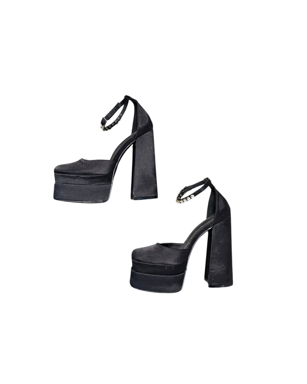 black cape robbin platform satin heels w rhinestone, 6