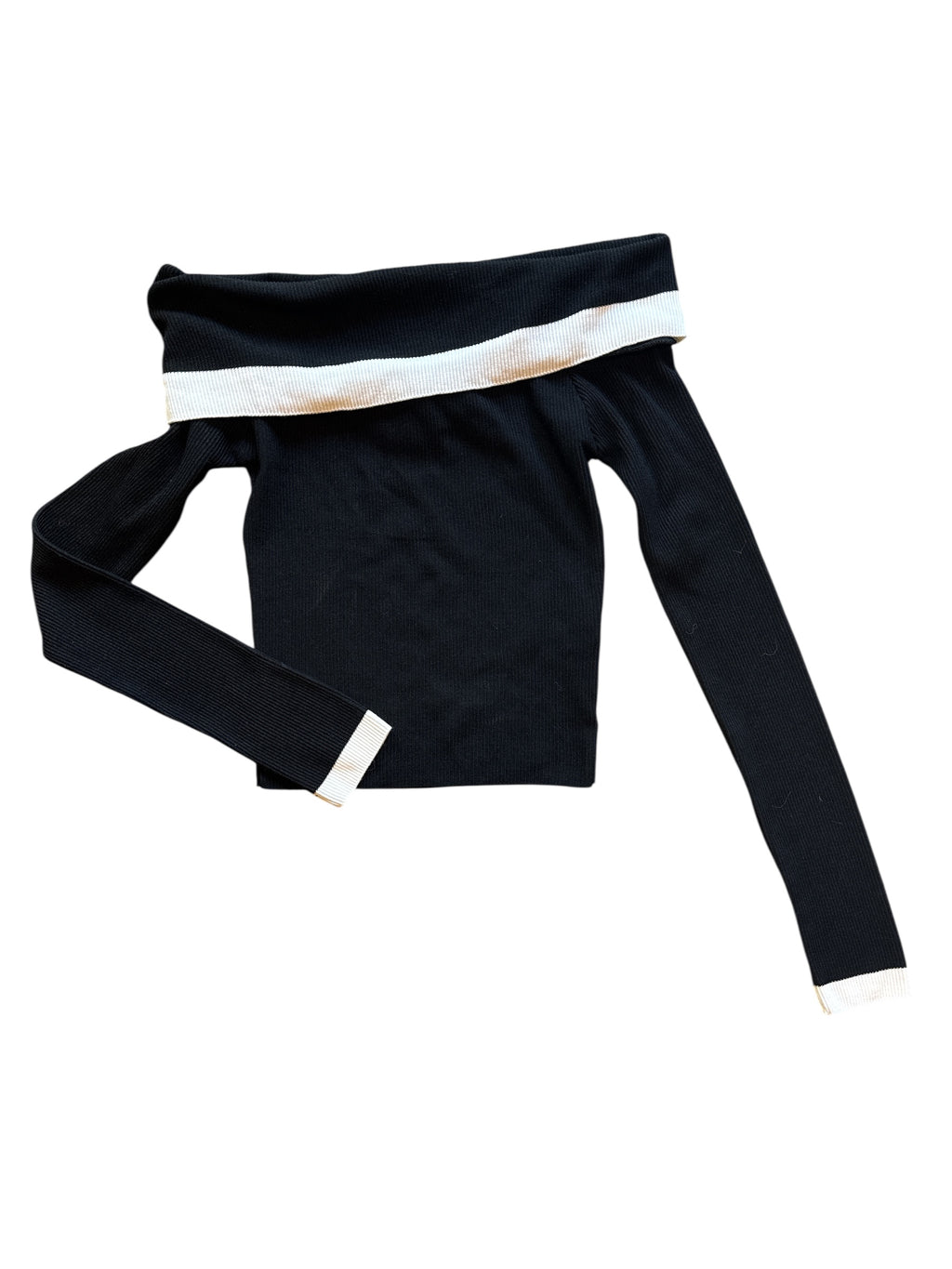 Black Divided Off shoulder ls w white trim, Xxs