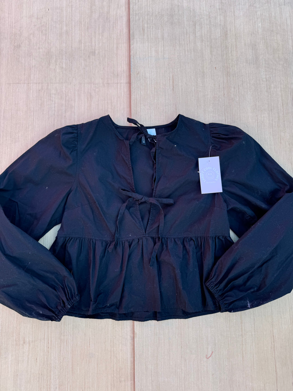 black divided tie front top, S