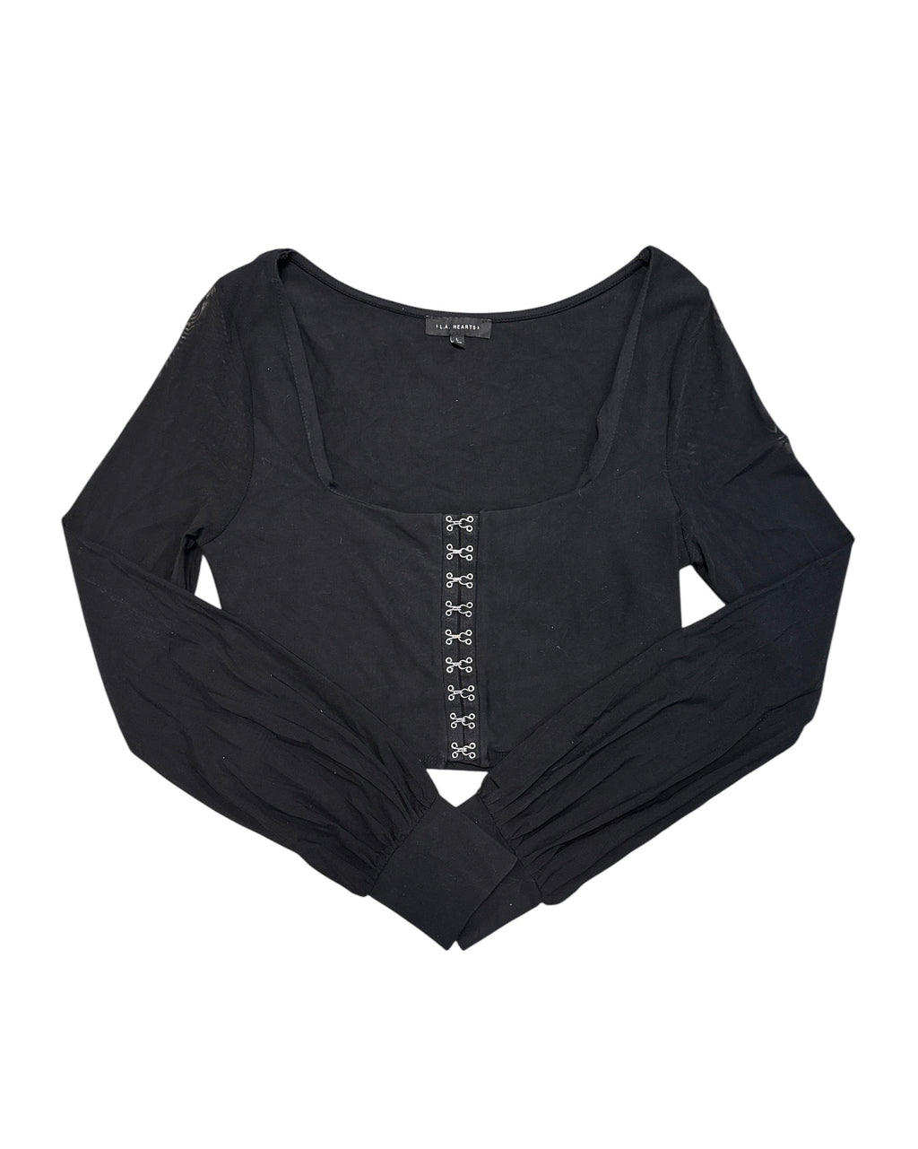 black la heart slinky scoopneck top w mesh sleeves, L