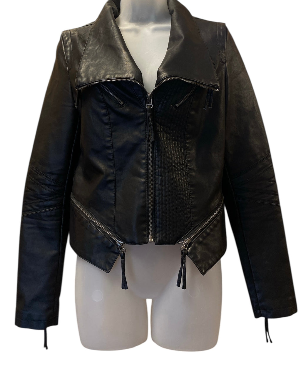 black lulus pleather zip up jacket, m