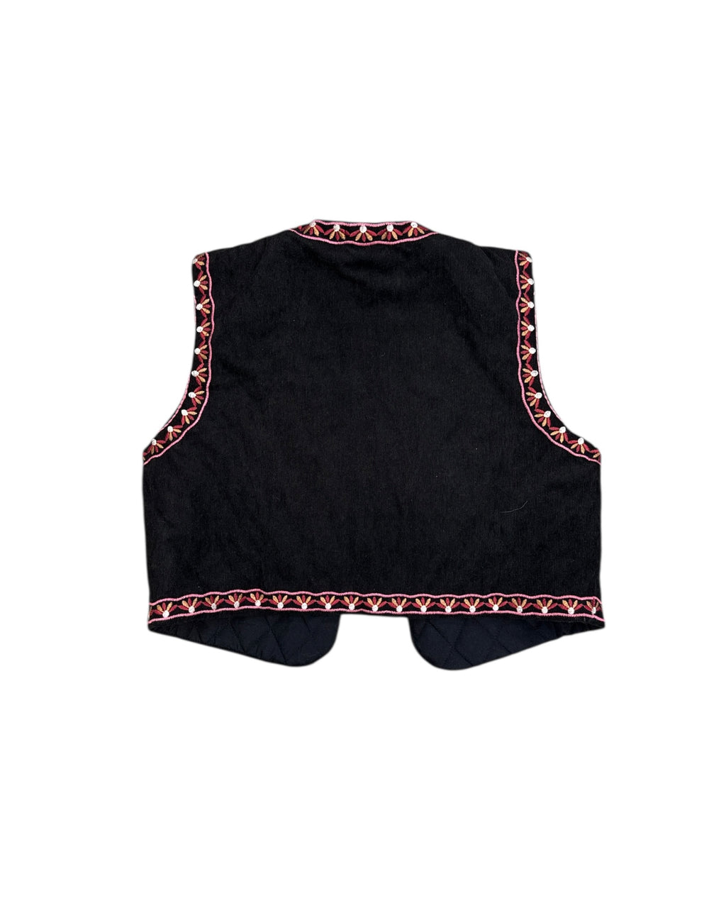 black pink vestique nwt ribbed wuilted embroider vest, L
