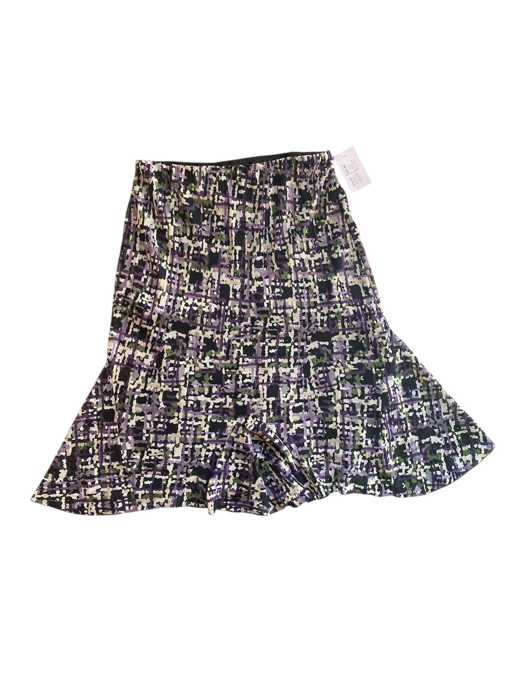 black purple green dressbarn patterned long ruffle midi skirt, L
