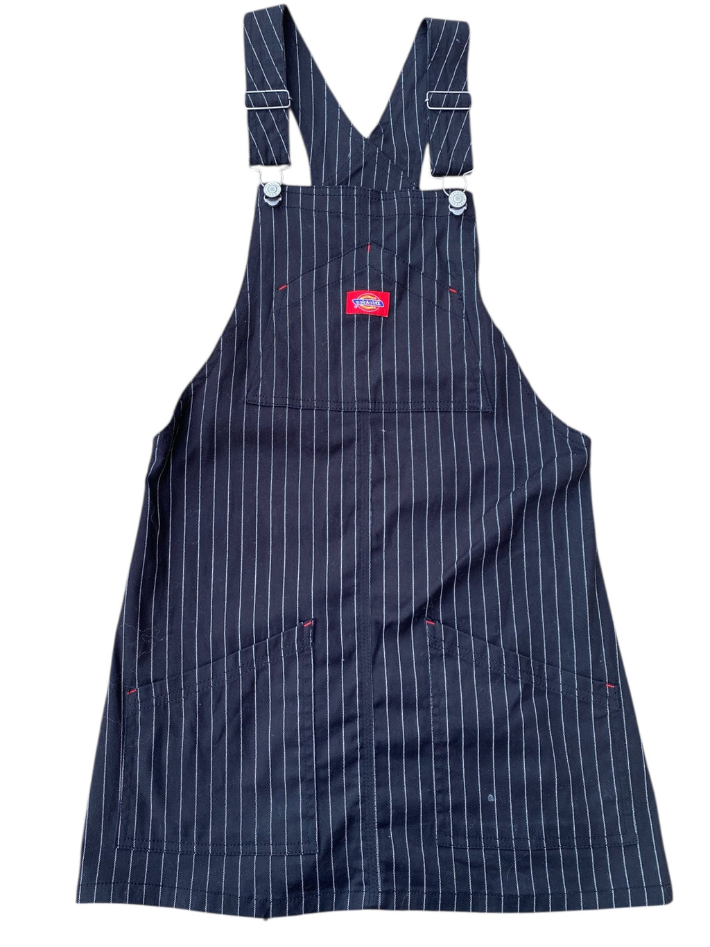 black white dickies pinstripe pinafore, xs