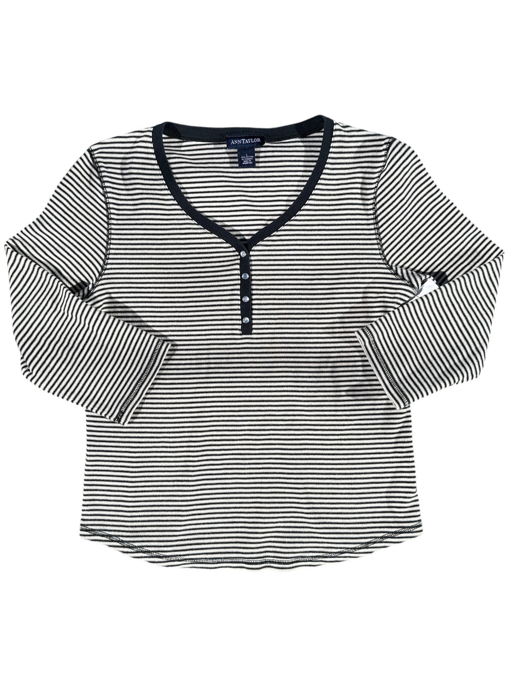 black whte ann taylor striped henley quarter sleeve top, L