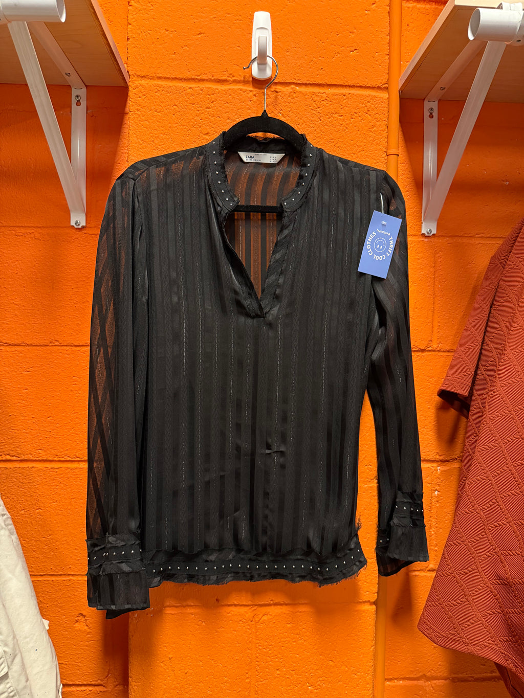 Black Zara Sheer sparkly ls, M