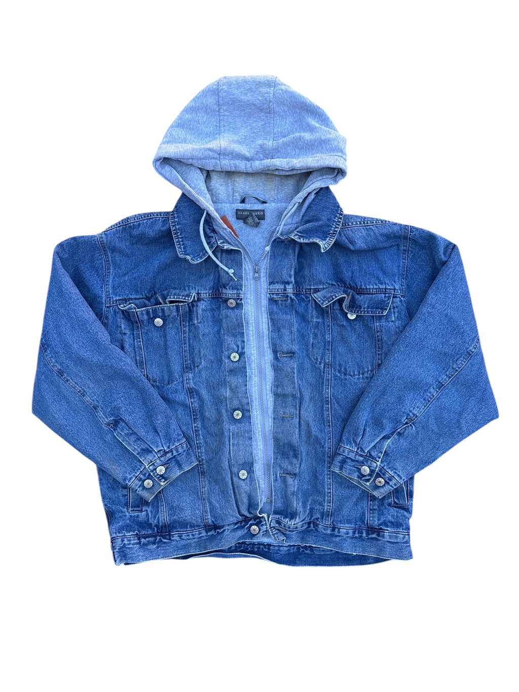 blue gray saddlebred hoodie layer denim jacket, xxl