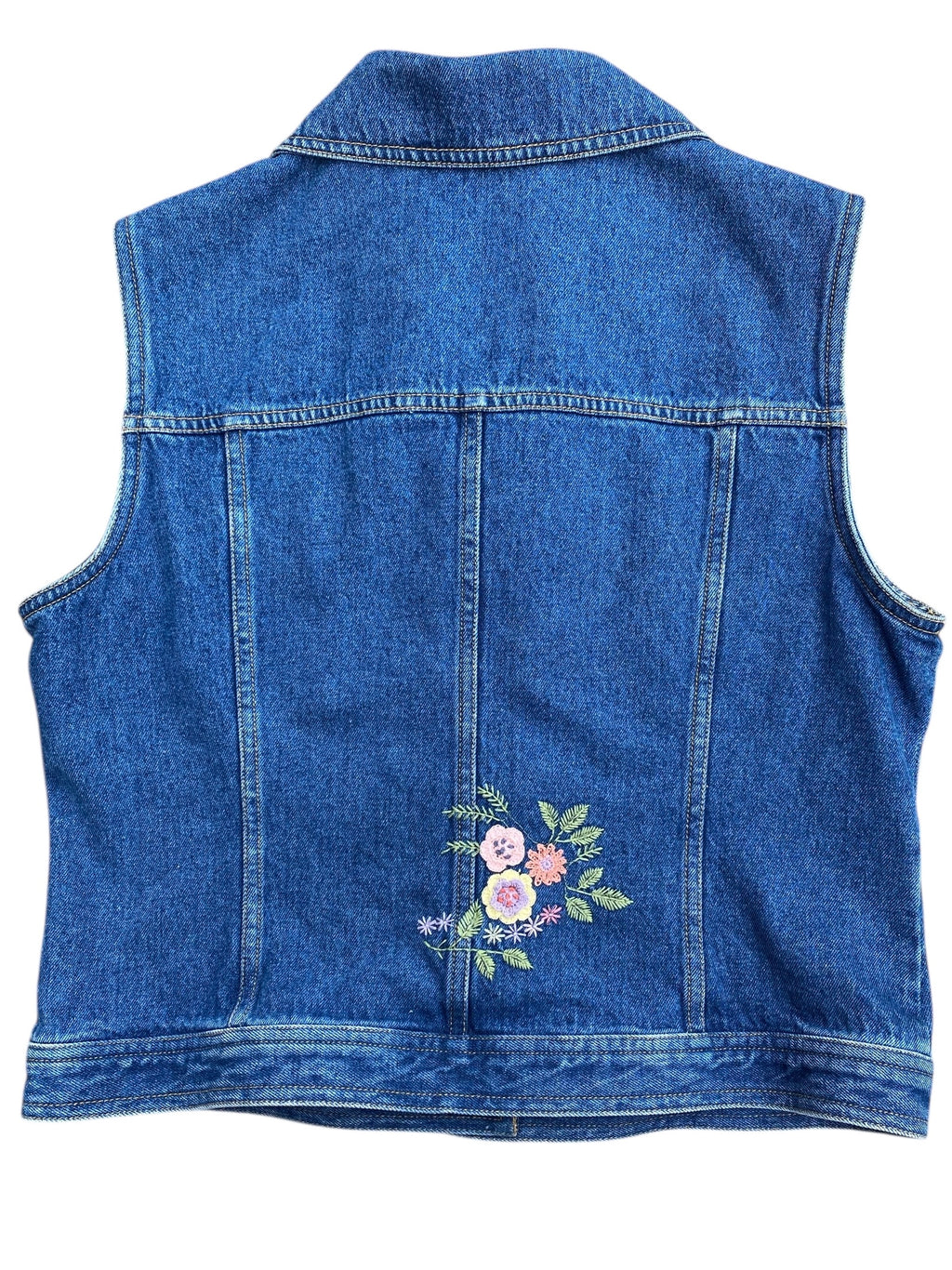 blue pink susan bristol denim vest w floral embroidery, Pm
