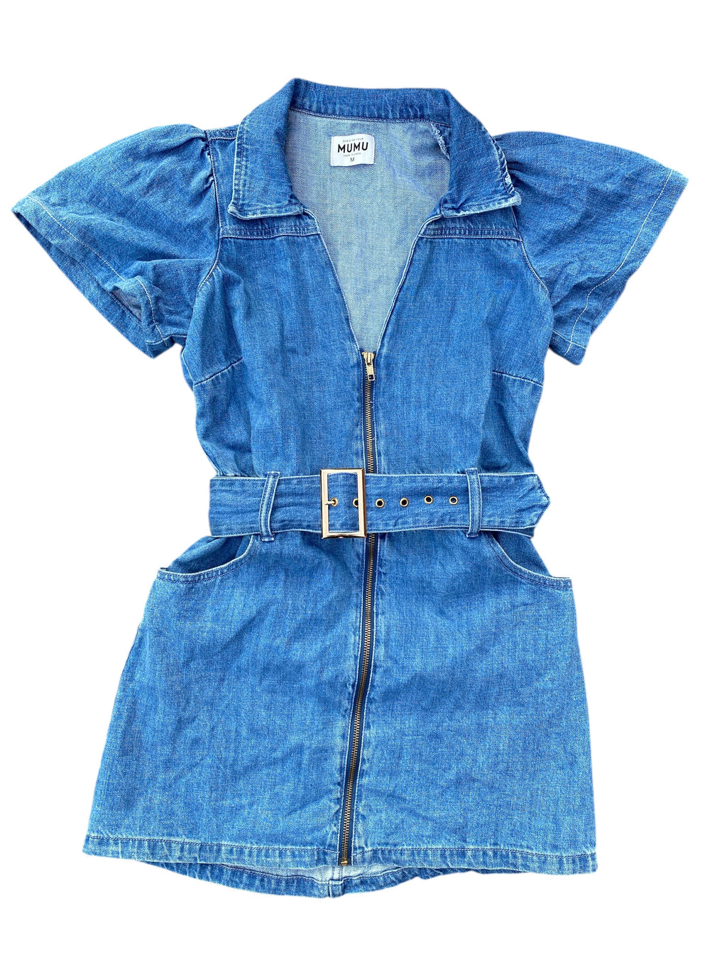 Blue Show me your mumu Denim belted dress, M