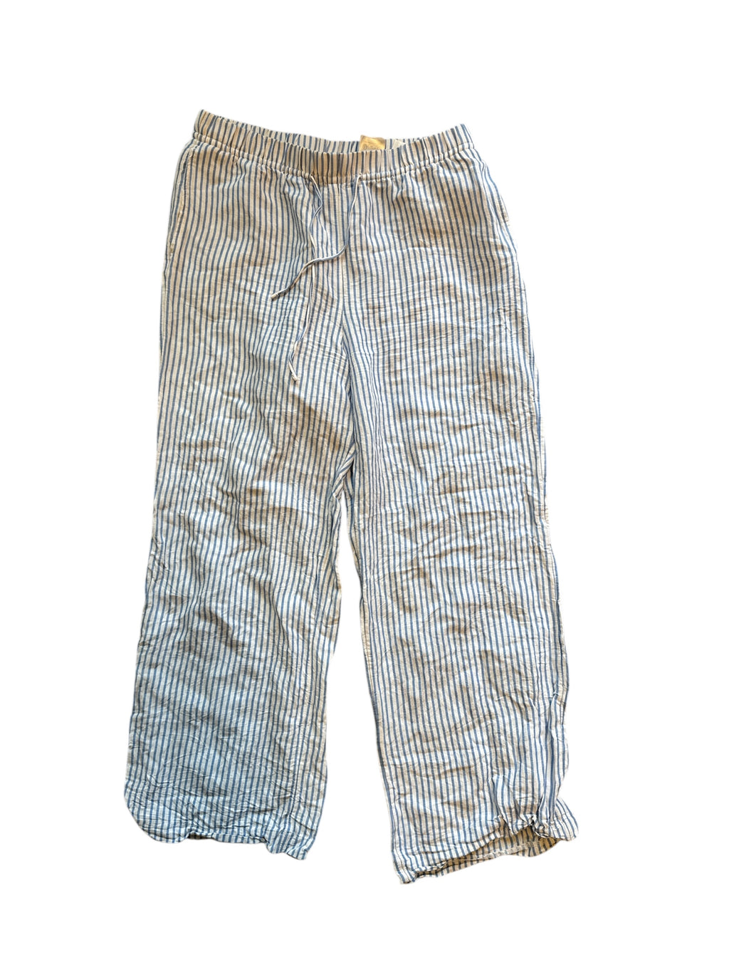 blue white h&m striped elastic linen pants, m