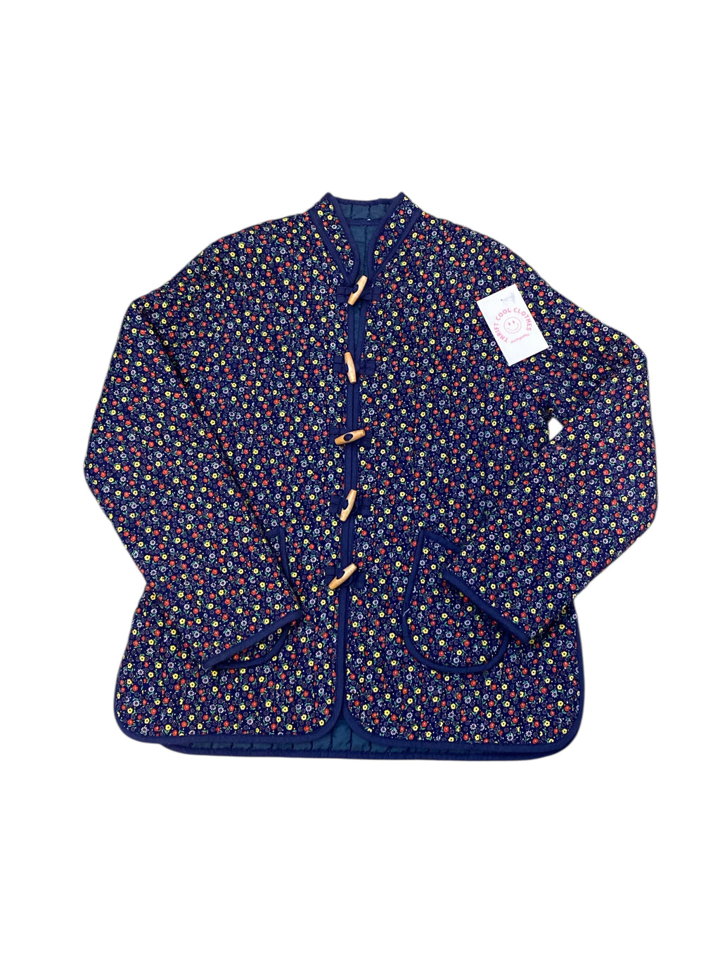 blue yellow red quilted floral coat