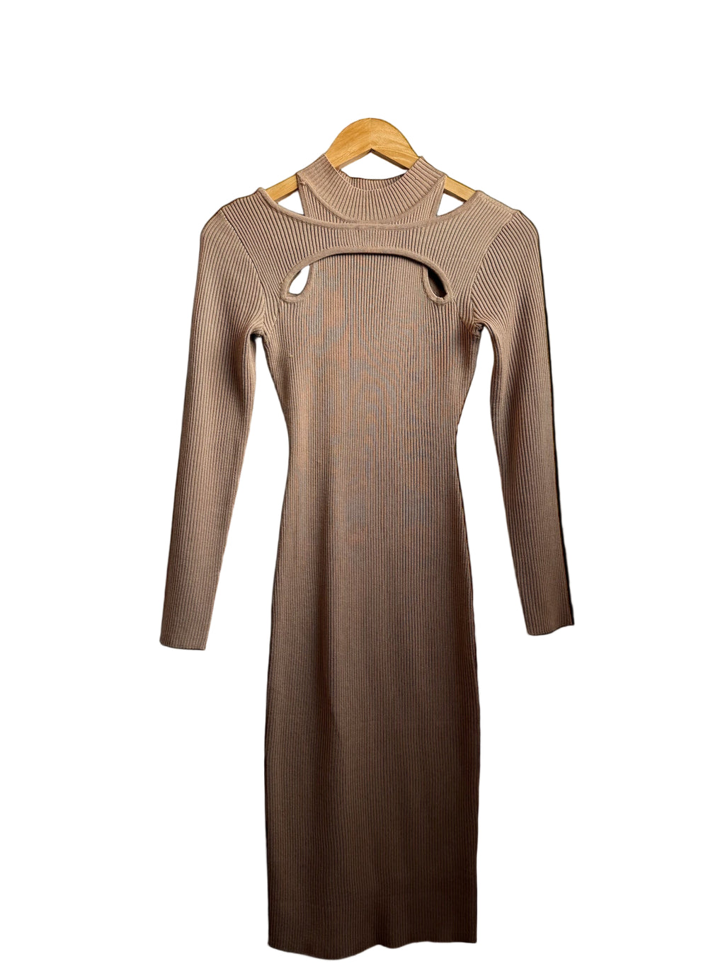 brown fashion nova ribbed cutout dress, s