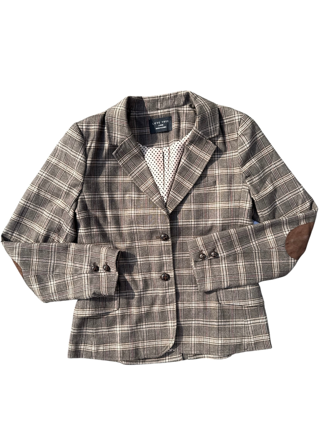 Brown Love tree Plaid blazer, L