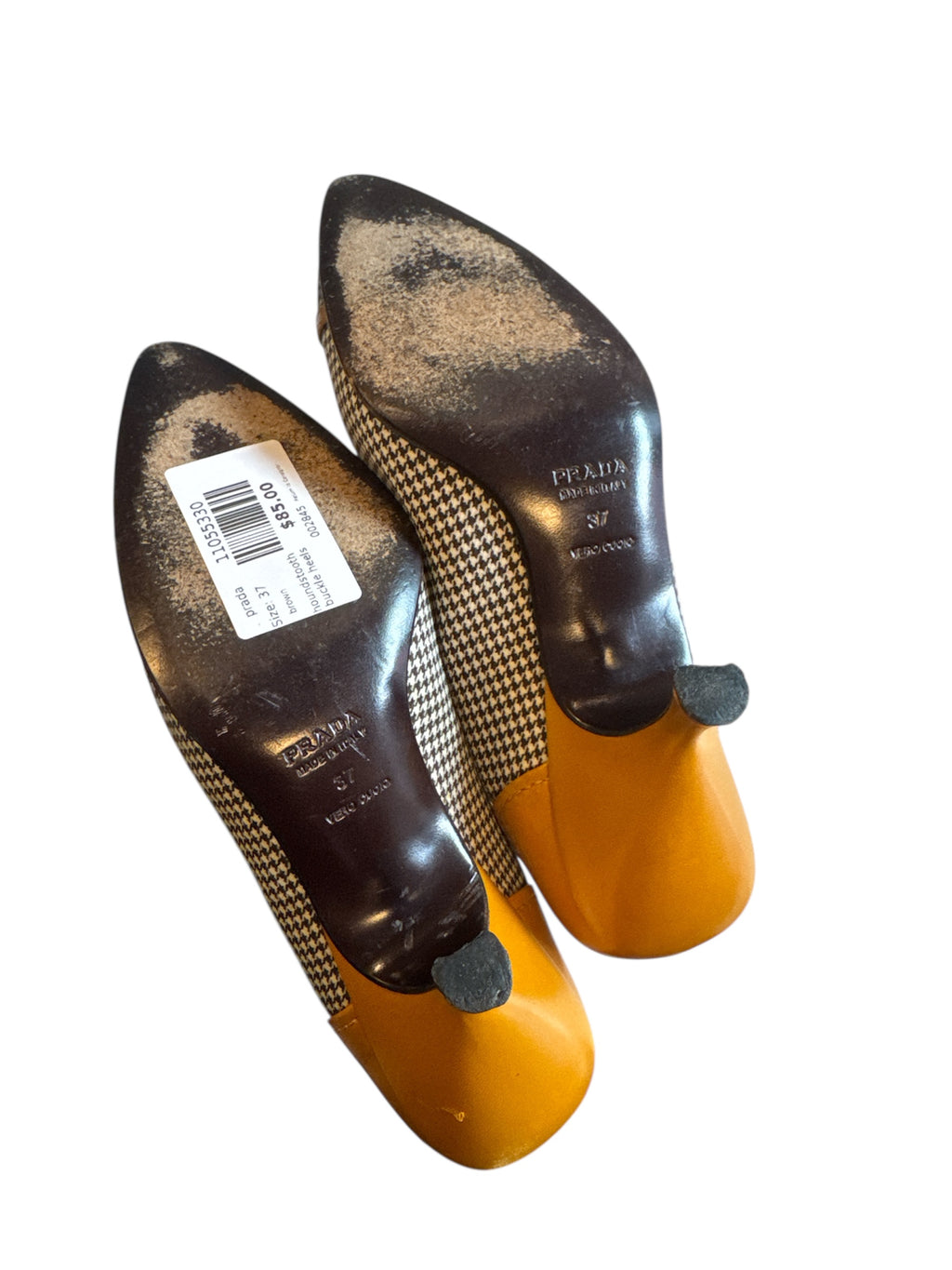 brown prada houndstooth buckle heels, 37 (fits like 7, runs narrow)