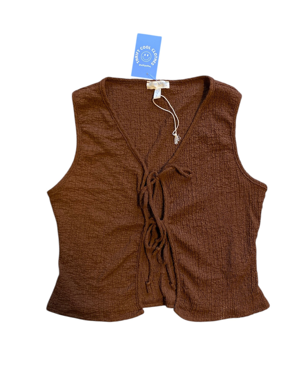 brown see you monday tie front tank, L