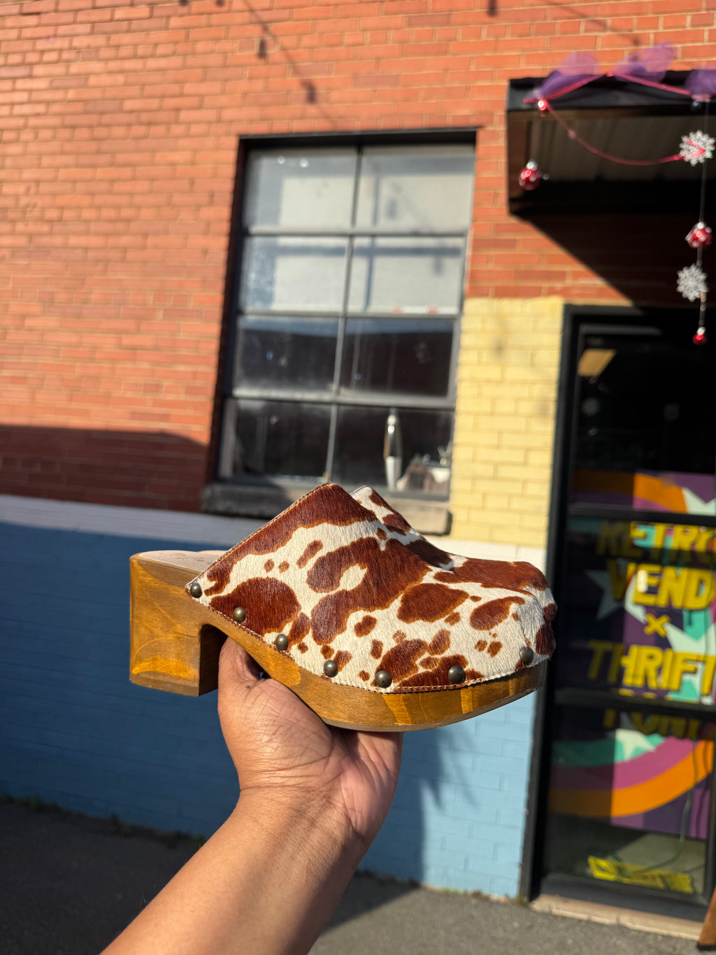 brown white matisse cow clogs, 6