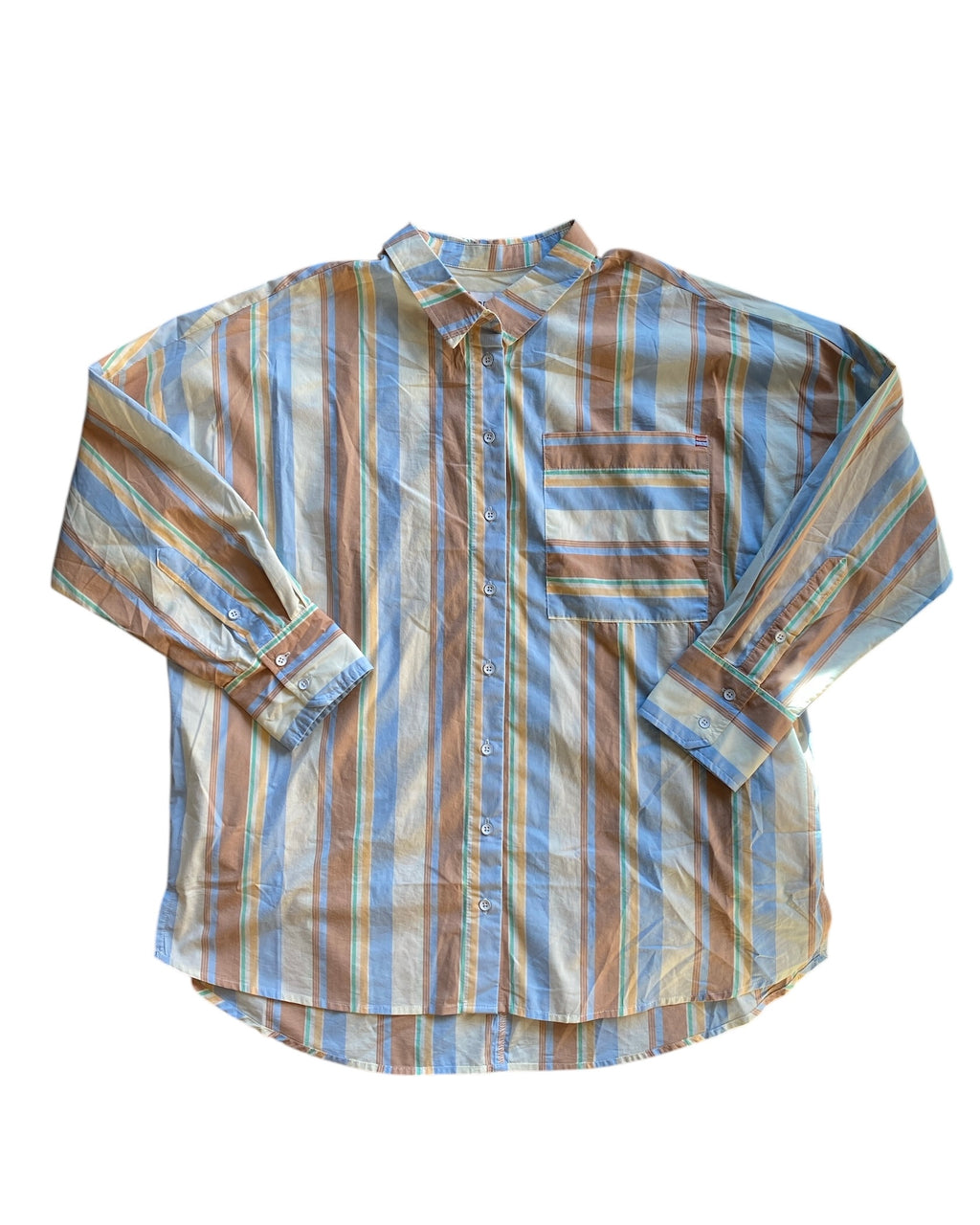 Cream blue orange green Bdg Striped button down, L