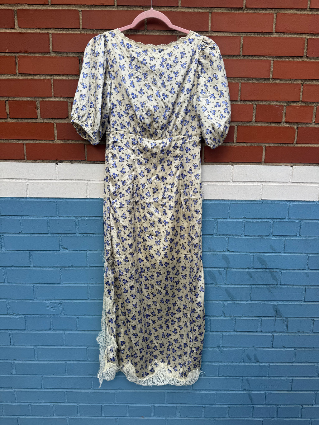 cream blue urban outfitters nwt floral silky dress w lace, s