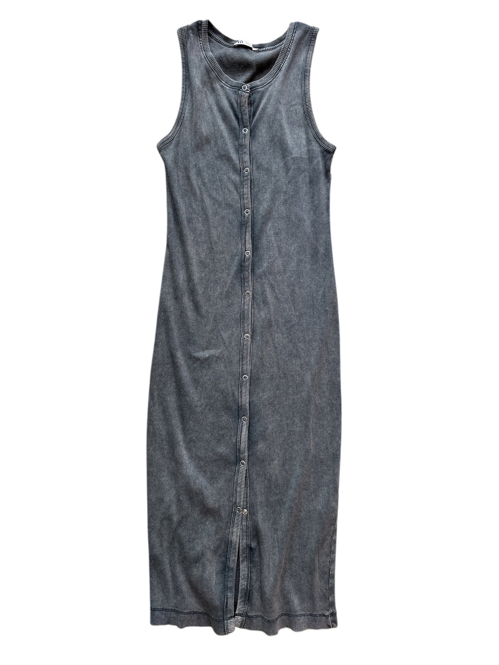 gray zara button up ribbed dress, s