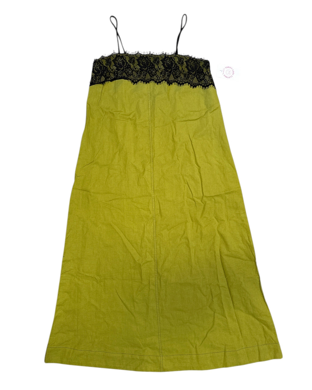 Green black Asos design Linen-y maxi dress w lace, 6