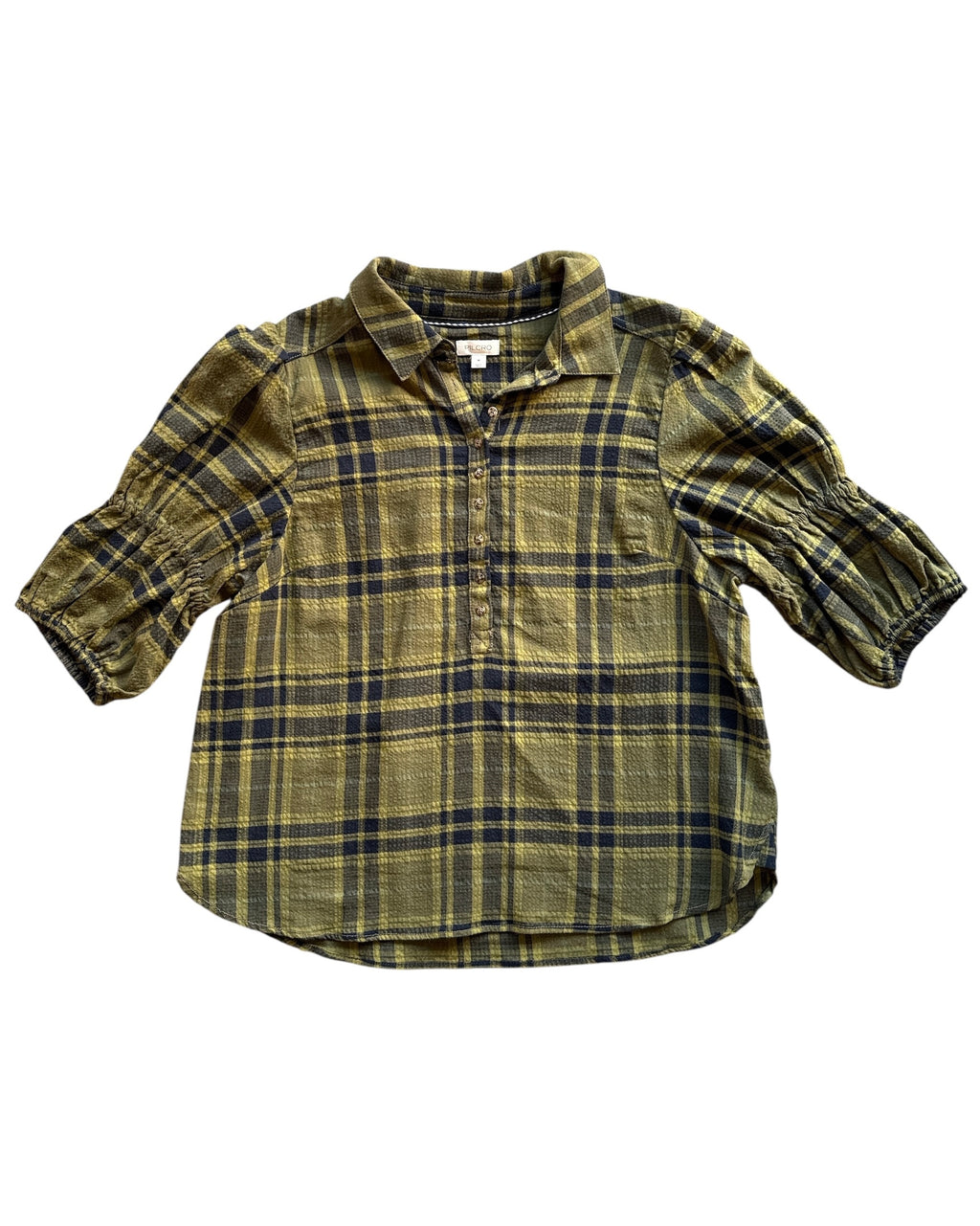 green black pilcro plaid smock sleeve top, m
