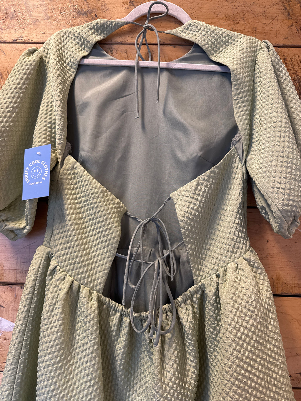 green Glamorous open back textured balloon sleeve dress, s