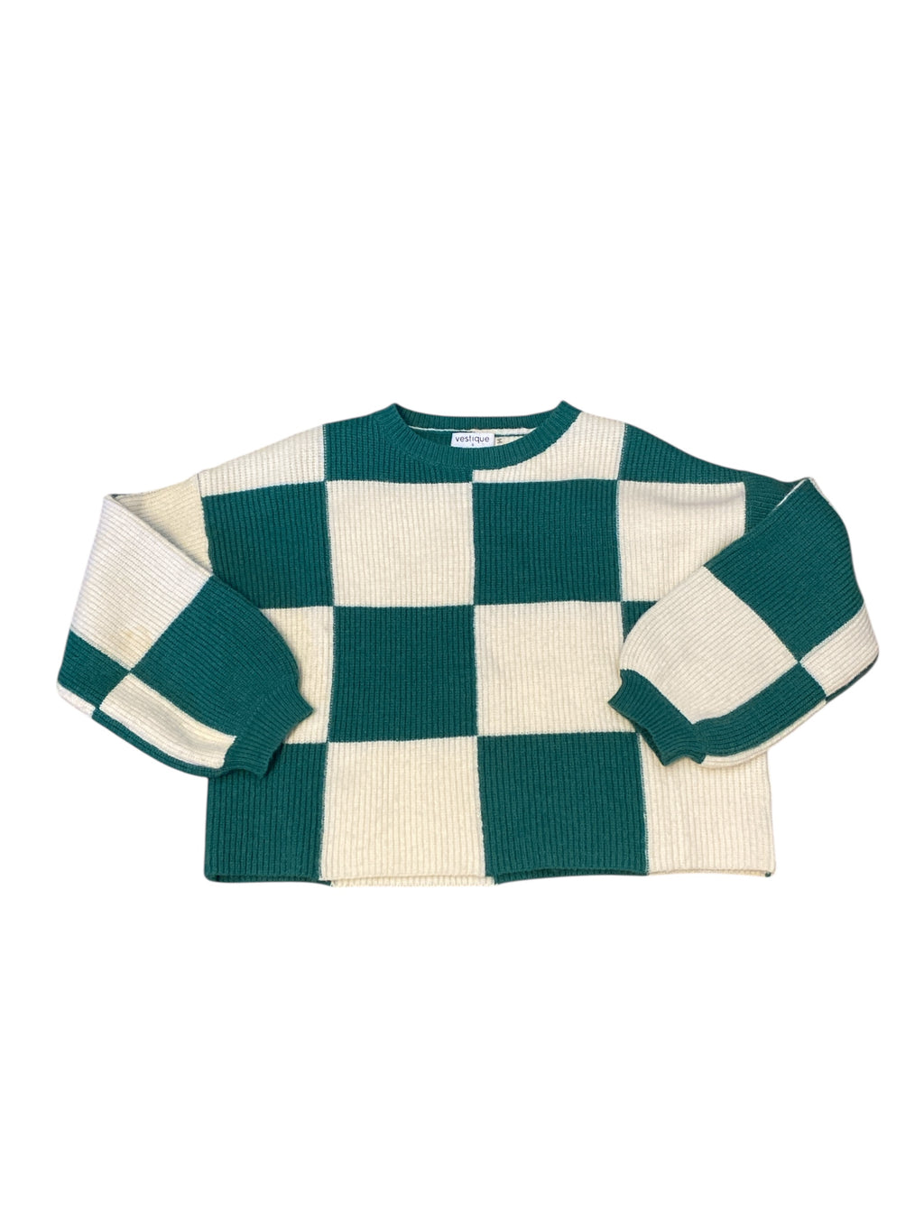 green white Vestique checkered crop sweater, S