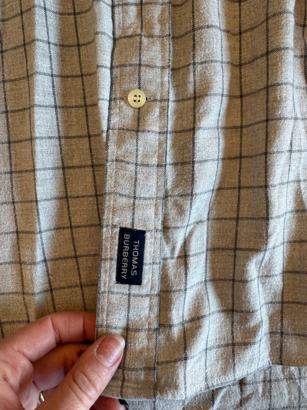 light gray gray burberry plaid button down, L