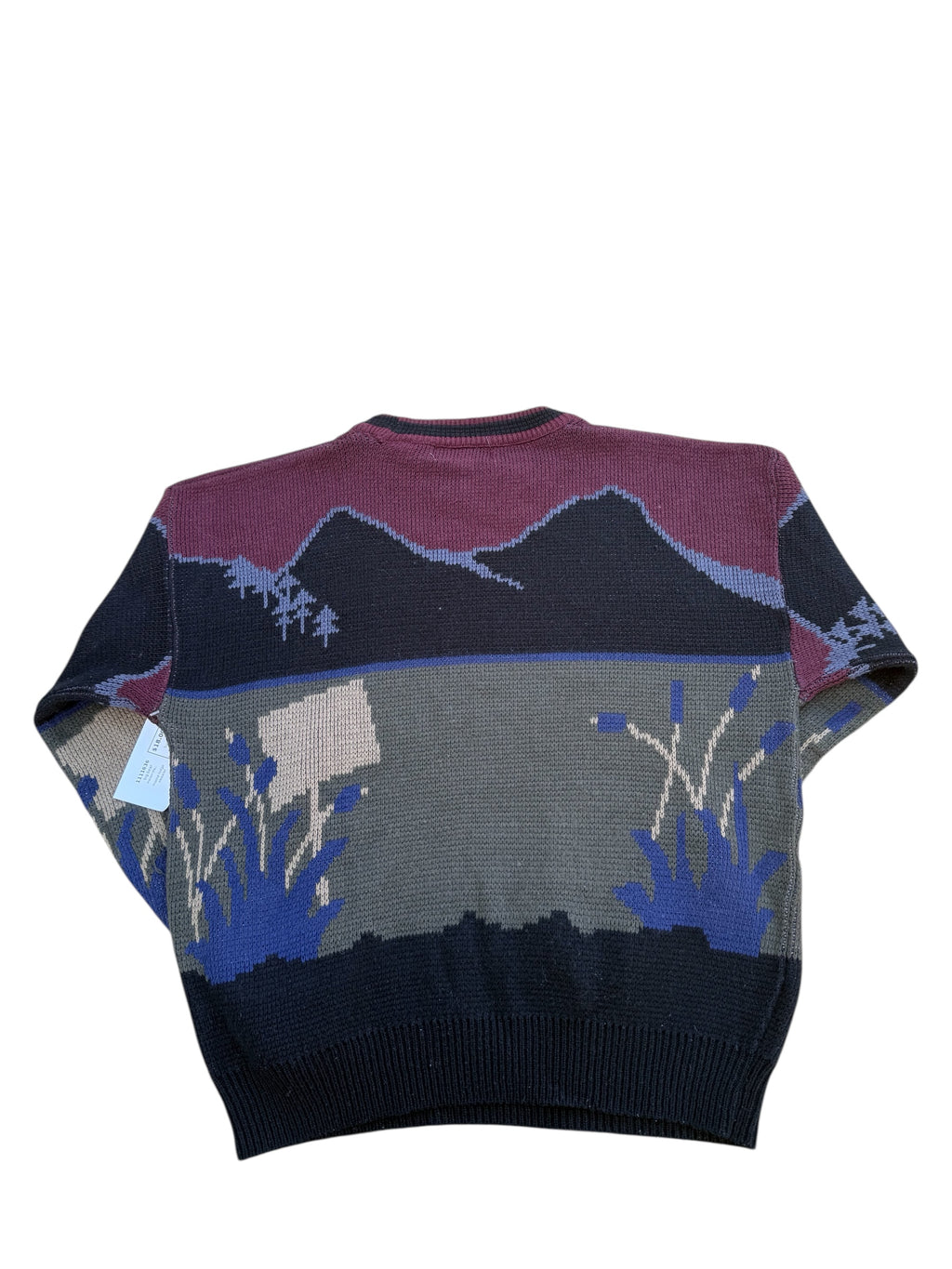 maroon black green big bear moose lodge sweater, L