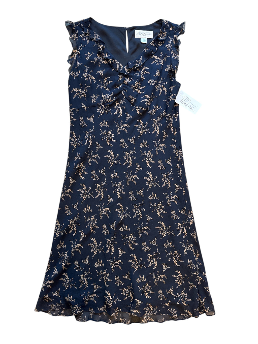 navy brown annex floral ruffle dress, 8 (fits like S)
