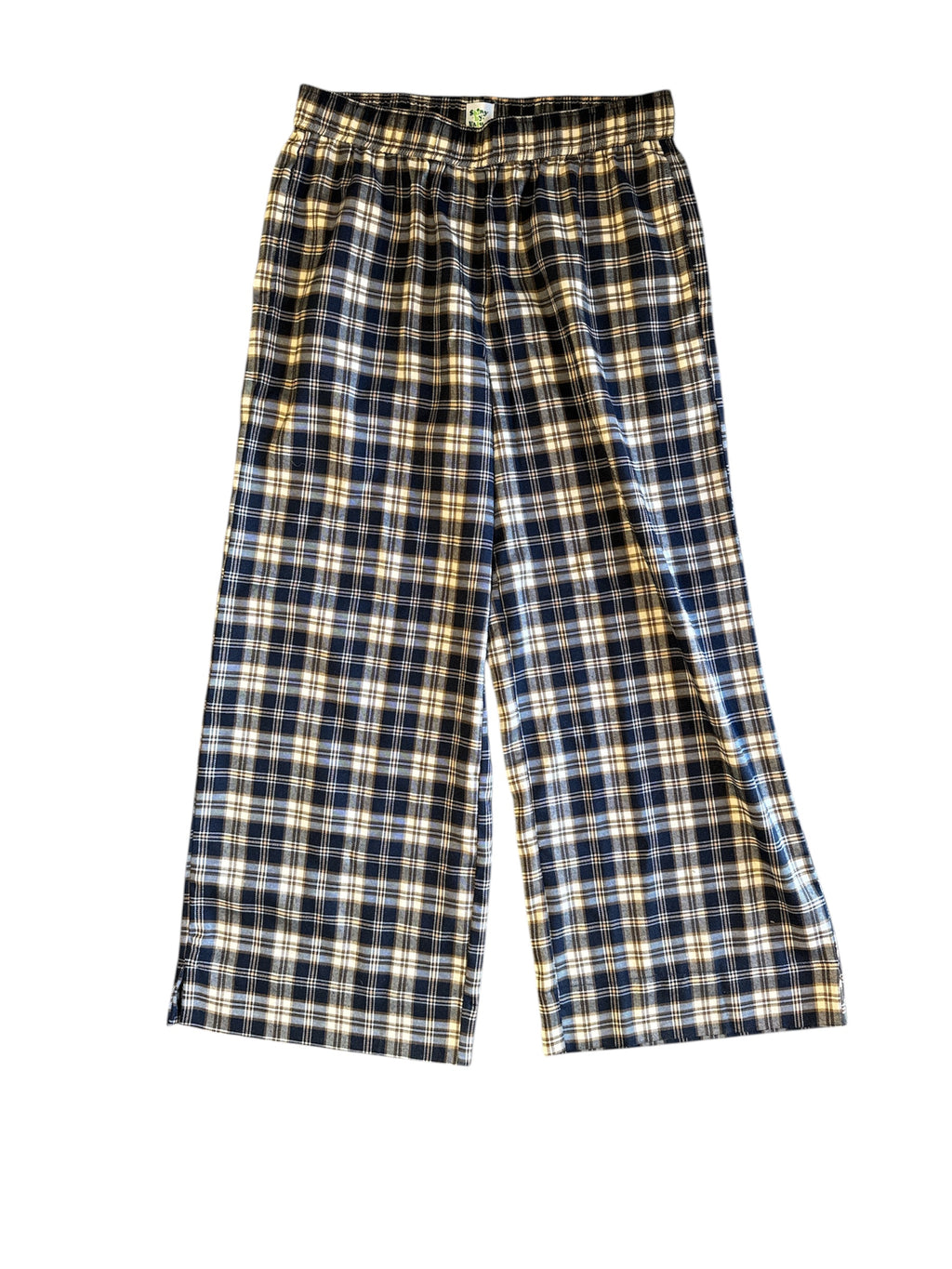 navy brown shiny by nature plaid elastic pants, m