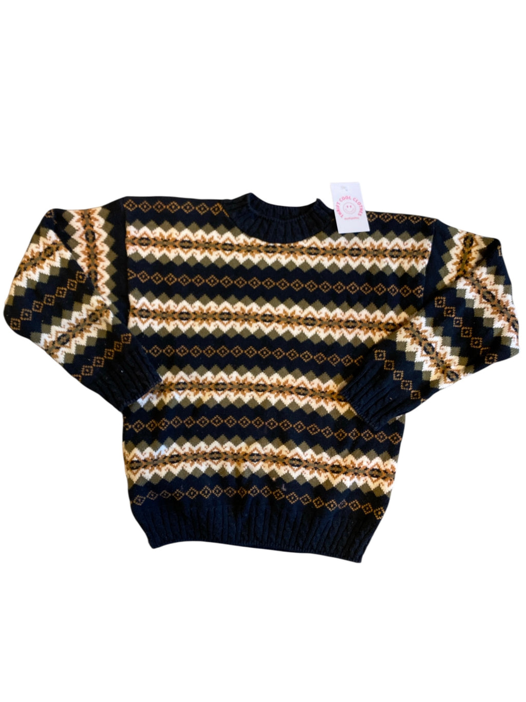 navy orange green cero republic vtg diamond pattern sweater, m