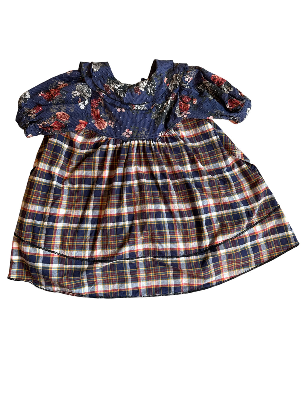 navy Pilcro plaid swing dress, L