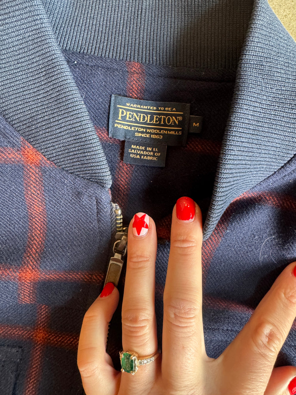 navy rust Pendleton plaid wool zip up, m