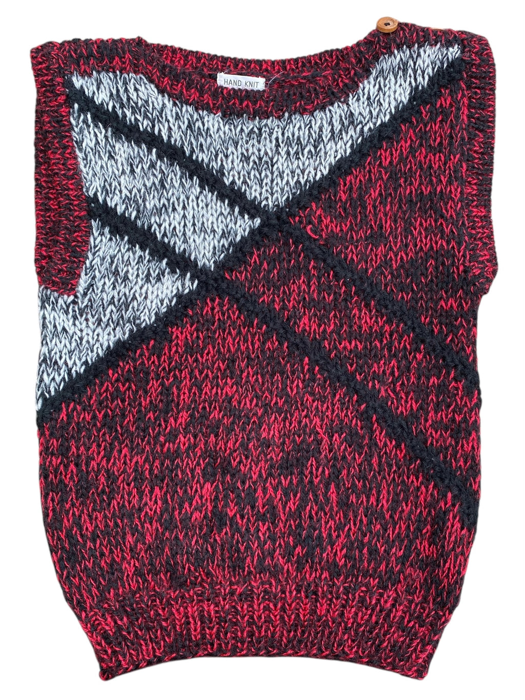 Red black gray Cherry stix Vtg handknit sweater vest, S