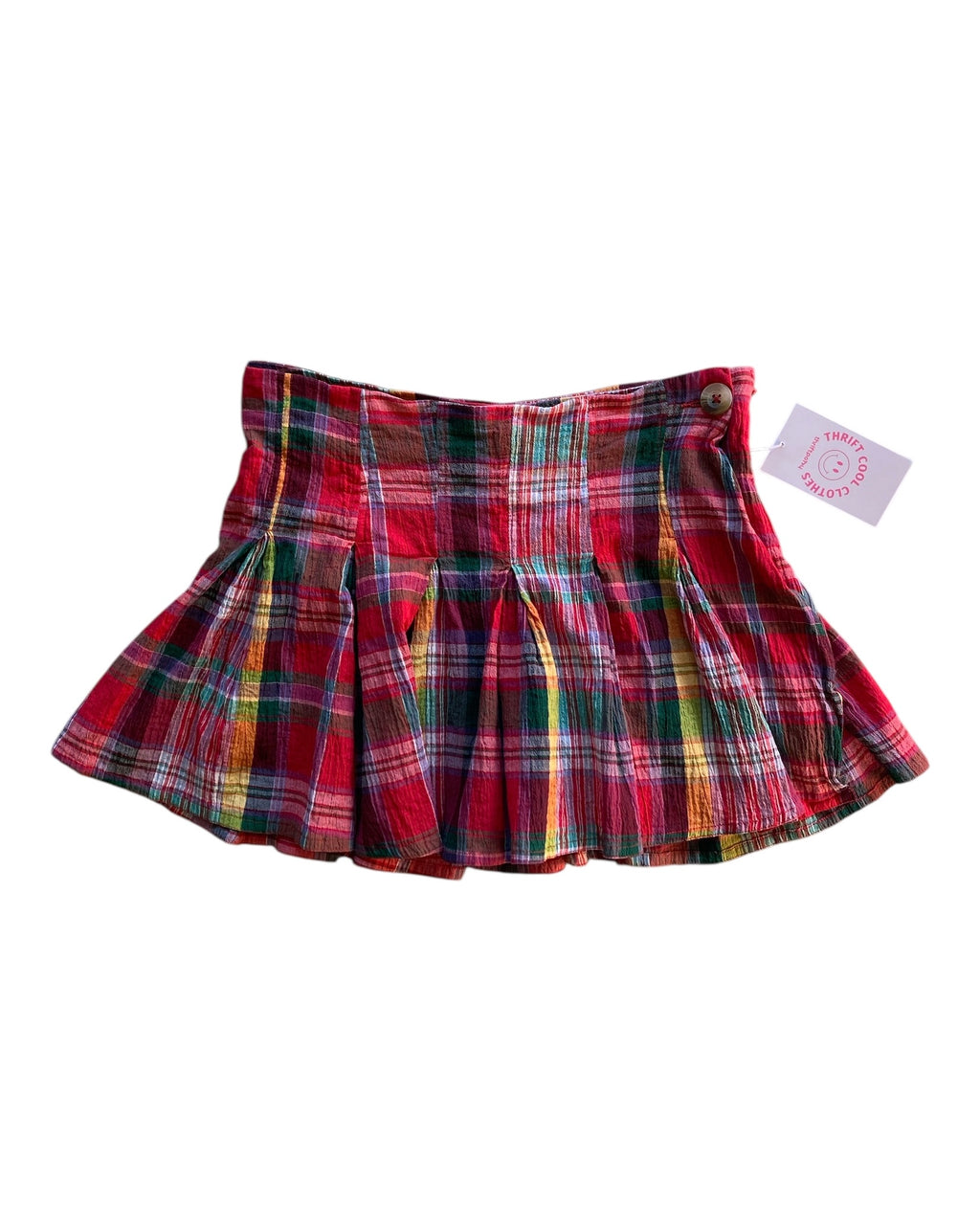 red green yellow pink bdg linen plaid pleated mini skirt, xs