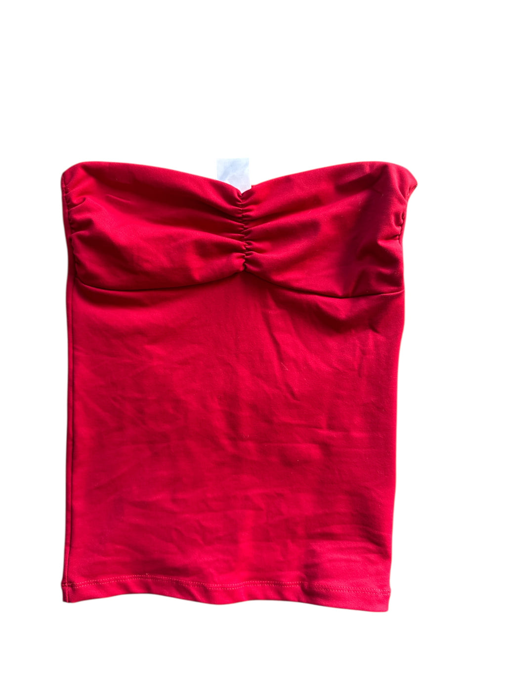 red ta ruch strapless top, l