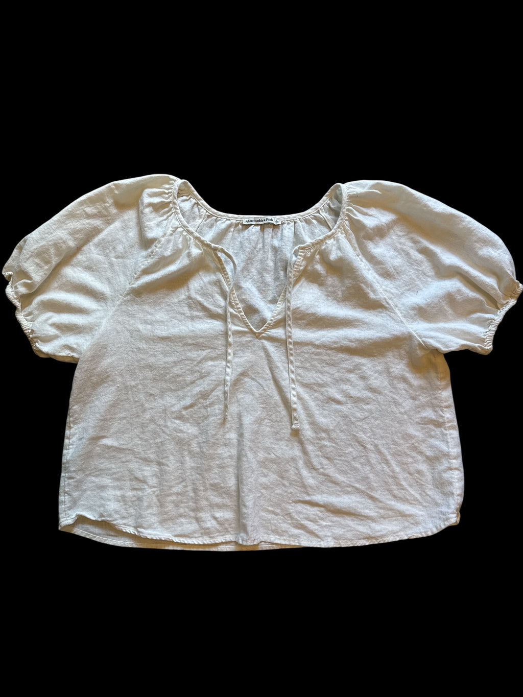 white abercrombie puffy sleeve linen top, L