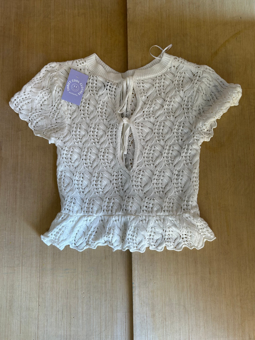 white divided crochet peplum top, m