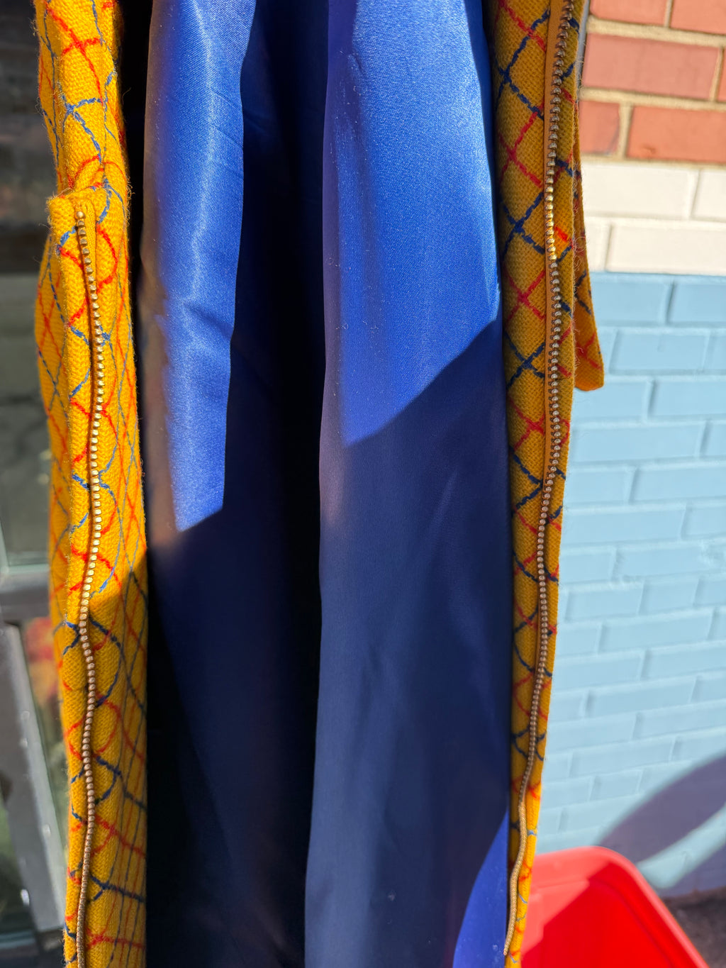 yellow lang vtg plaid zip up coat, 7